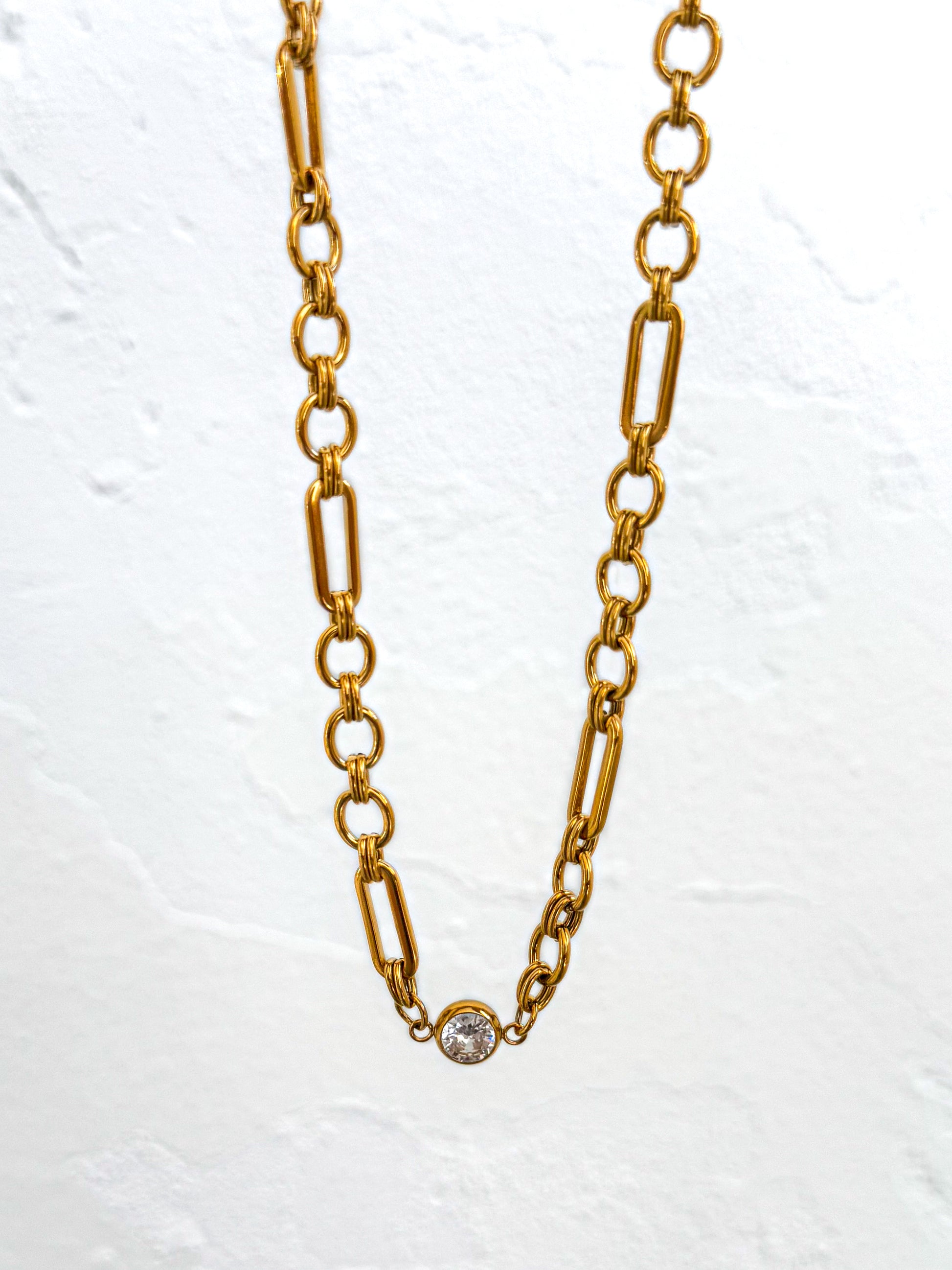 Una pieza pensada para quienes buscan elegancia, simplicidad y modernidad en un solo detalle. Este collar de cadena moderna luce una zirconia central que aporta un brillo sutil y sofisticado. Zoé es un accesorio versátil y atemporal, capaz de complementar cualquier look, resaltando tu estilo y esencia.