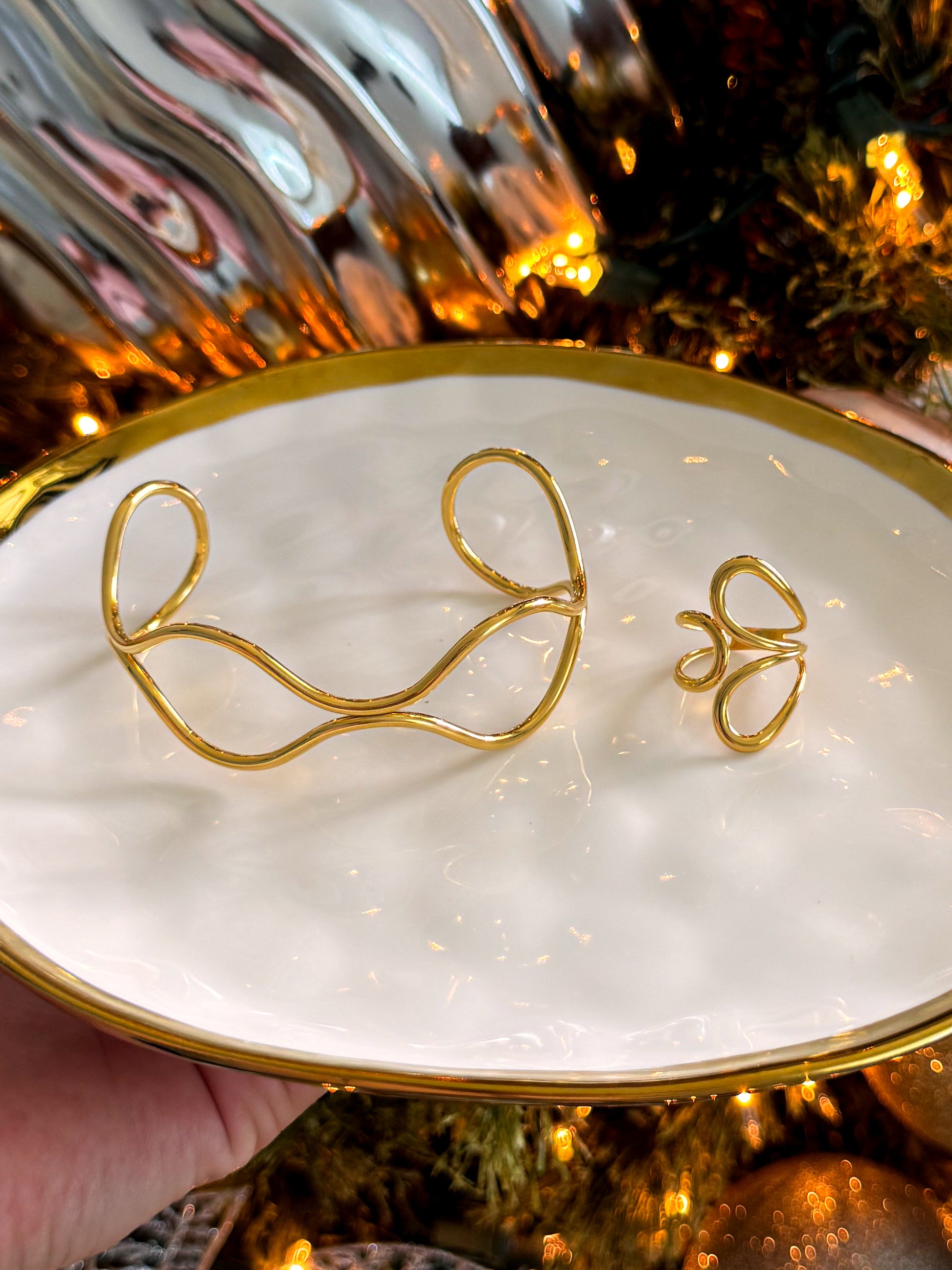 El regalo perfecto para ti o para alguien especial. Este hermoso conjunto incluye pulsera y anillo en acero inoxidable, ambos ajustables, y lo recibirás en una bella caja, listos para sorprender con estilo y significado.