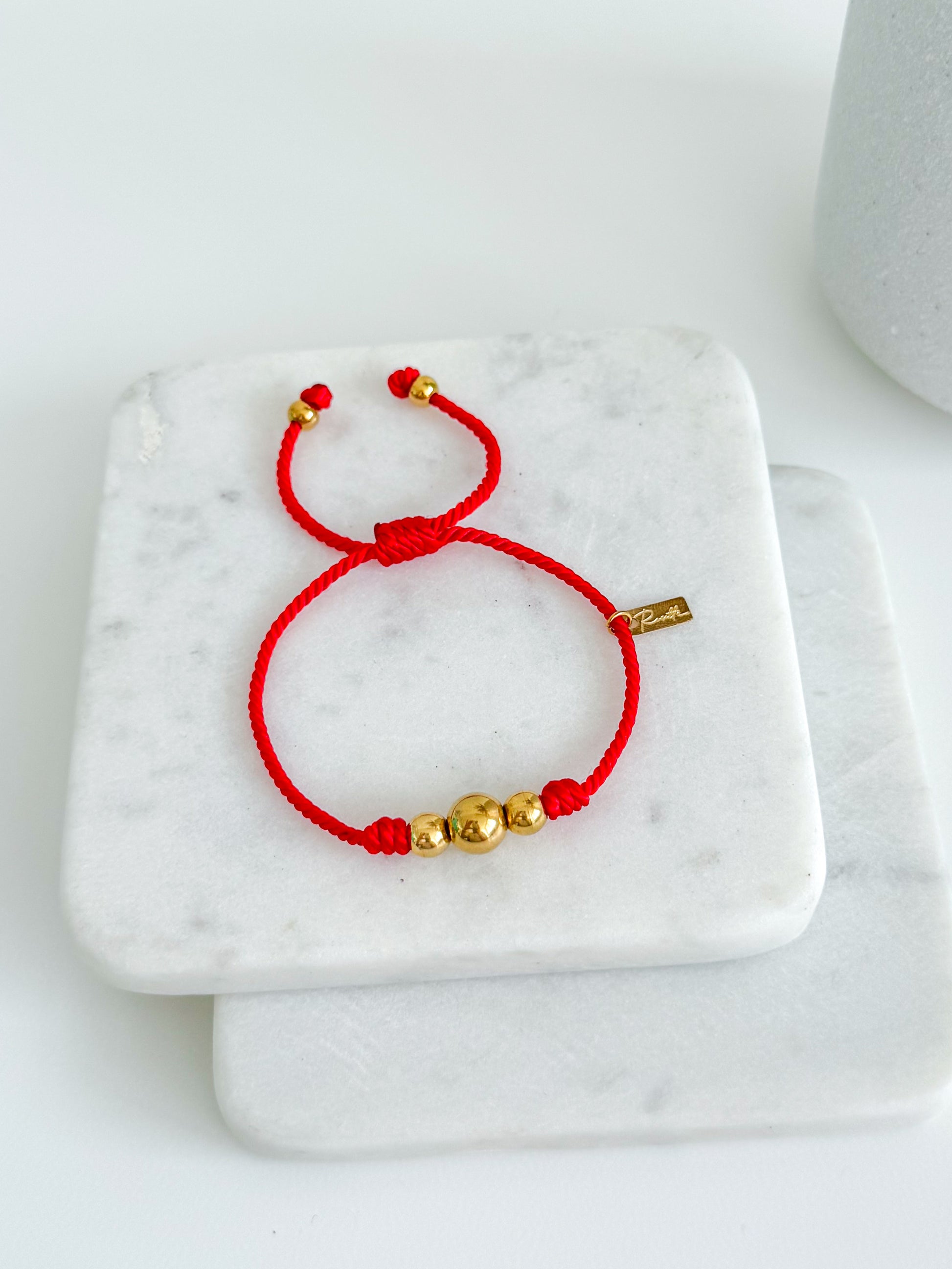 Material: Red Thread With Golden Stainless Steel Beads