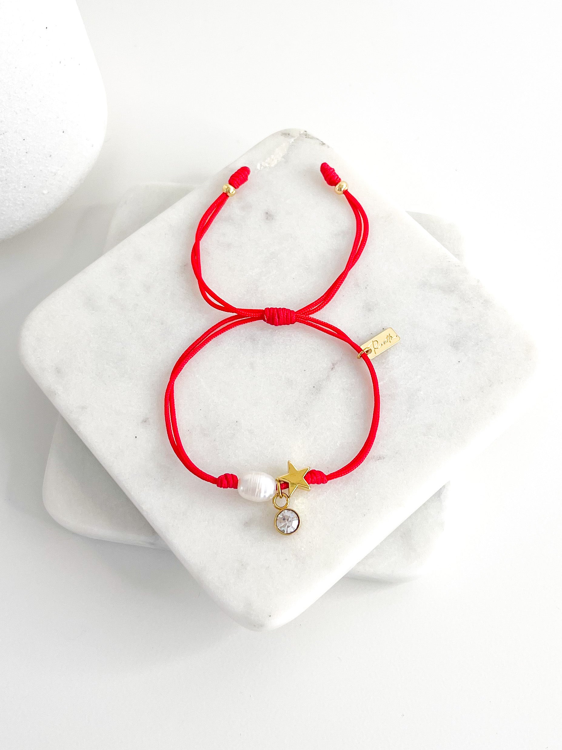 Material: Red Nylon Thread With Zirconia and 18k Gold plated Star and beads.